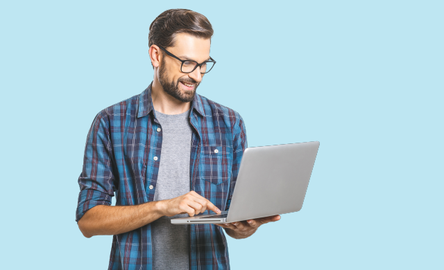 A real estate agent completing work on a laptop